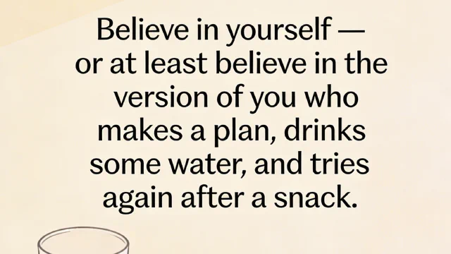 Believe in yourself — or at least believe in the version of you who makes a plan, drinks some water, and tries again after a snack.