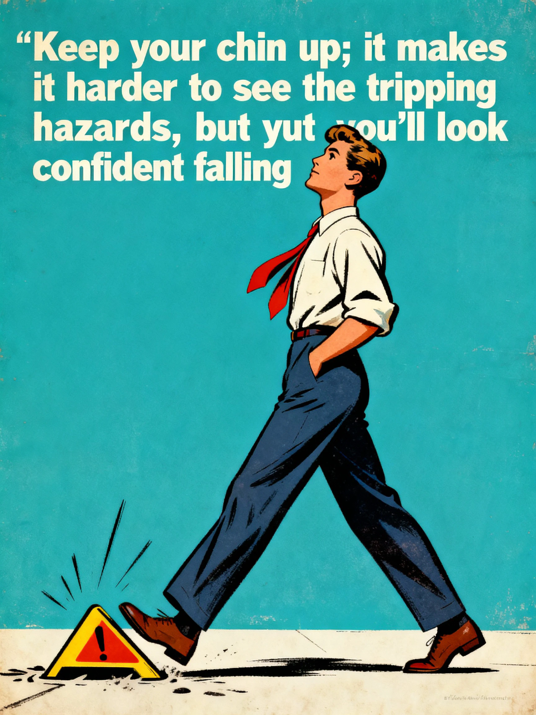 Keep your chin up; it makes it harder to see the tripping hazards, but you'll look confident falling.